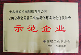 全國輕工業(yè)信息化與工業(yè)化深度融合示范企業(yè)