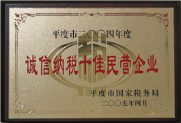 平度市誠信納說十佳民營企業(yè)