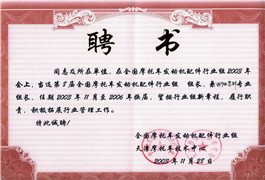 全國摩托車發(fā)動機配件行業(yè)組組長聘書