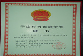 山東省輕工業(yè)科技進步獎證書