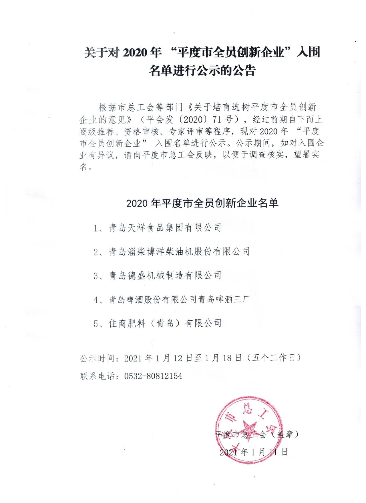 2020年度平度市全員創(chuàng)新企業(yè)