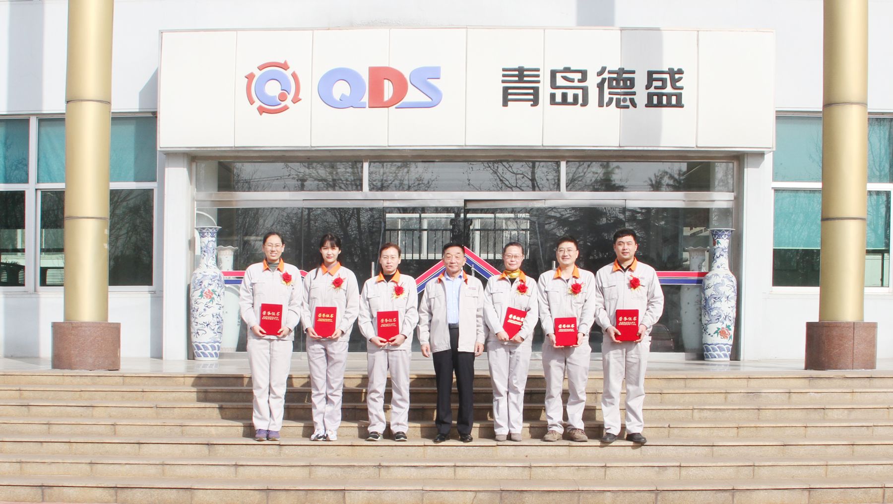 頒獎結束后,董事長孫佩璋及高管們分別與獲獎員工在辦公樓前進行合影留念。