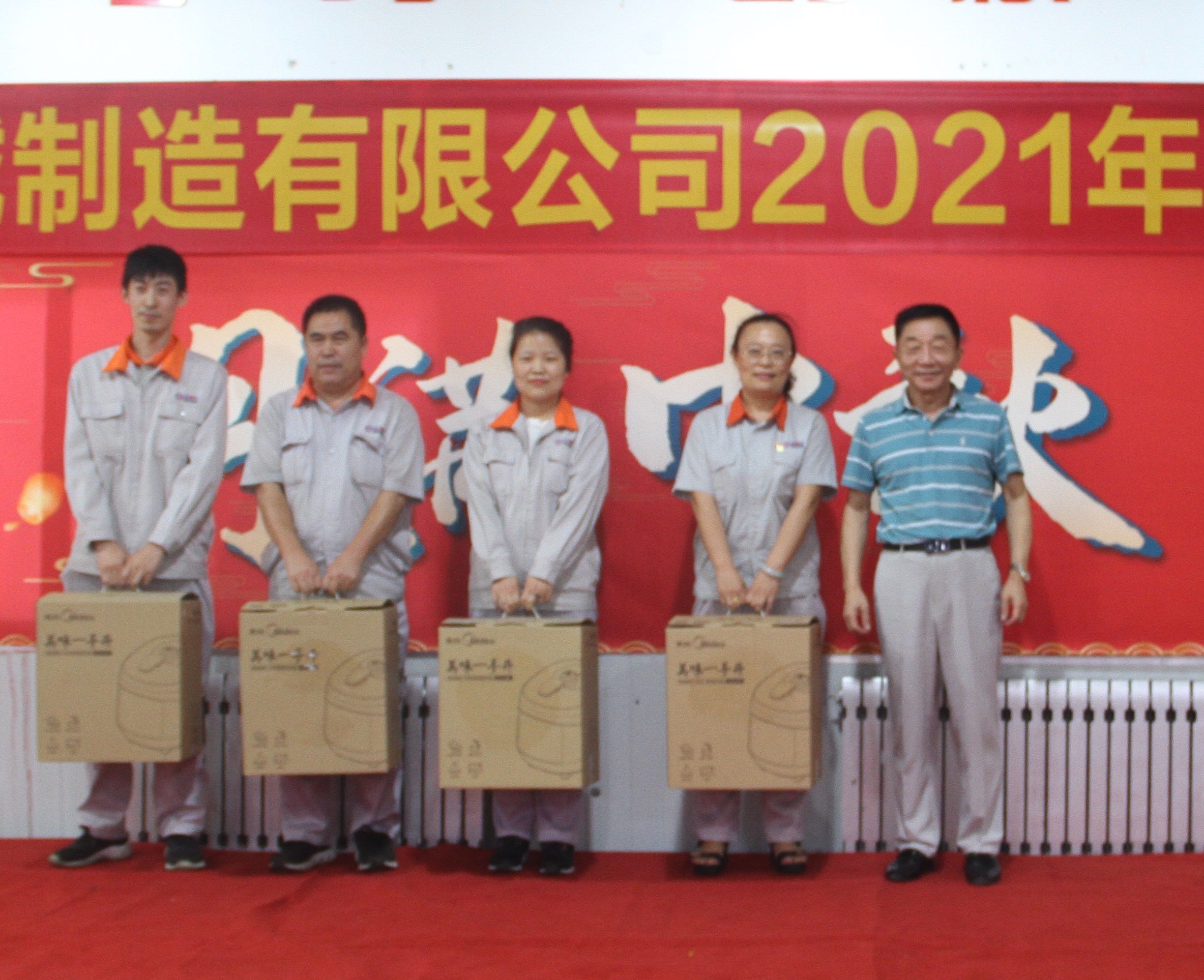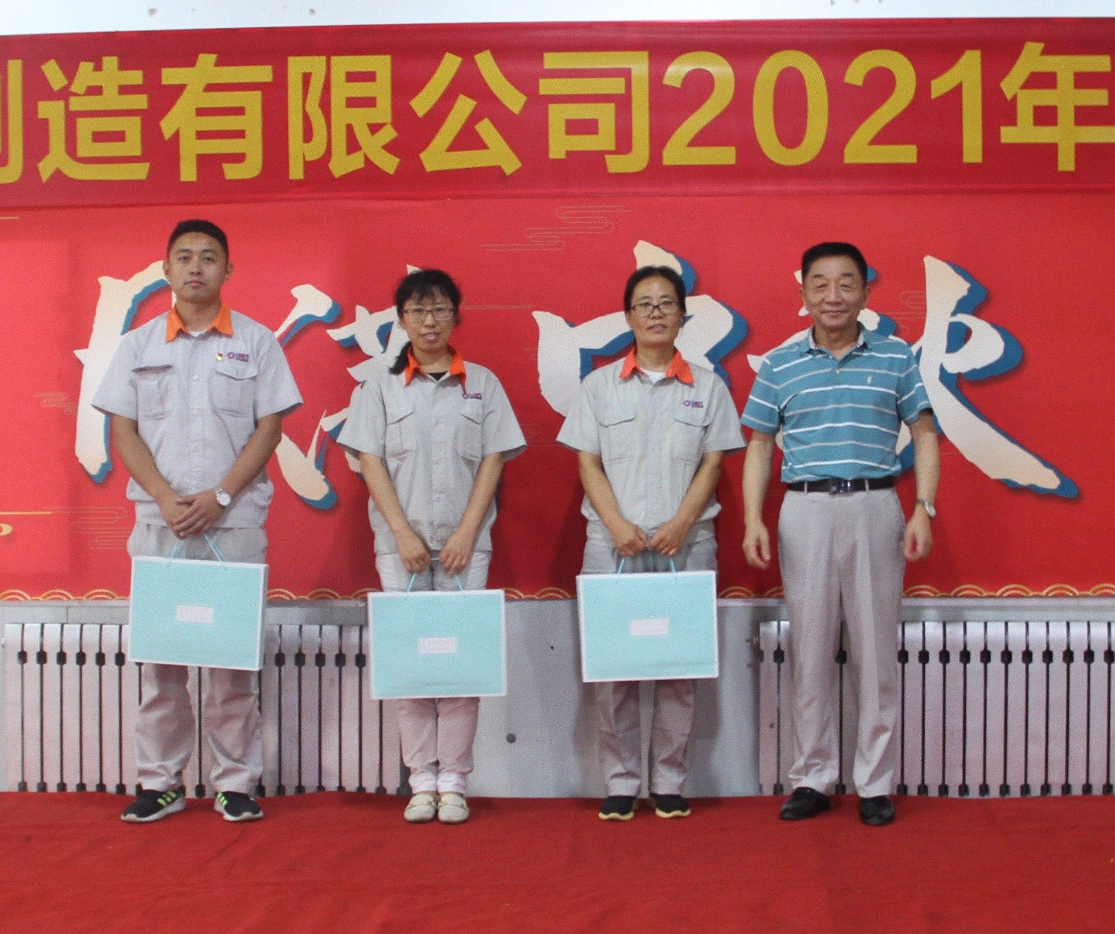 董事長為“抽獎環節”獲獎員工頒發獎品
